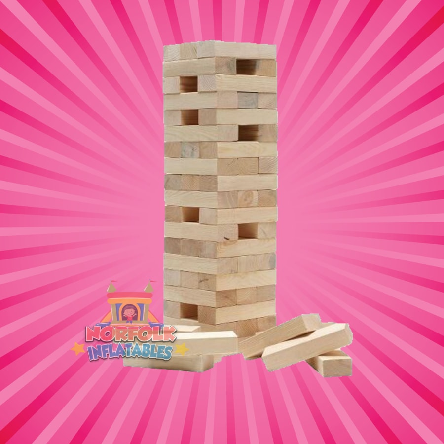 At Norfolk Inflatables, we offer high-quality Giant Jenga sets for hire. Our sets are made from sturdy wooden blocks that are built to withstand hours of play.